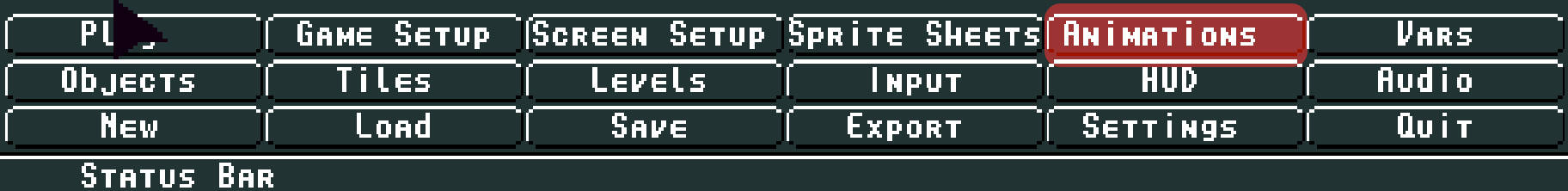 Im Hauptmenü von ™REDPILL findest Du den Button "Animations". Hier werden die Animationen für alle Objekte Deines Spiels definiert -- für ein Objekt wie der Spieler es ist, oder das Objekt eines Gegners, oder für eine sich öffnende Kiste. Einfach alles was sich bewegen soll. In diesem Menü stellt man die Nummer der Animation ein, das Start- und End-Frame der Animation (hast Du Dein Notizbuch parat?) und wie schnell die Animation abgespielt werden soll. Es gibt noch zahlreiche andere Einstellmöglichkeiten, aber das soll für den Anfang genügen. Bevor Du aber irgendeine Animation erstellen kannst, muss natürlich eine Animation geladen sein. Diese geladenen Animationen werden "Spritesheet" genannt.